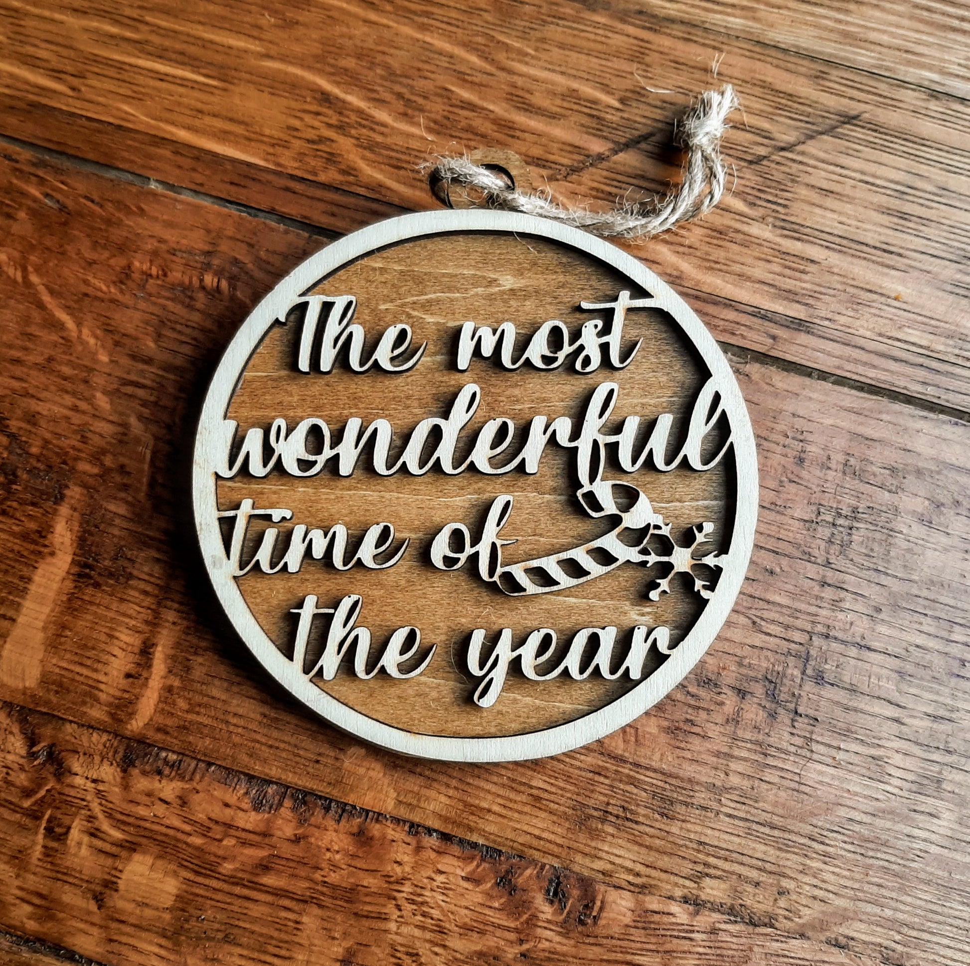 Crafted from high-quality wood and expertly laser cut, our Most Wonderful Time of the Year ornament is the perfect addition to your holiday decor. Celebrate the season with this charming and timeless ornament that captures the essence of this special time of year.